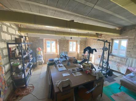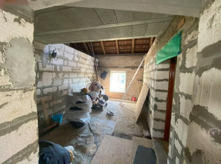 Střecha - pálené tašky. Krovy dobré. Nezatepleno.