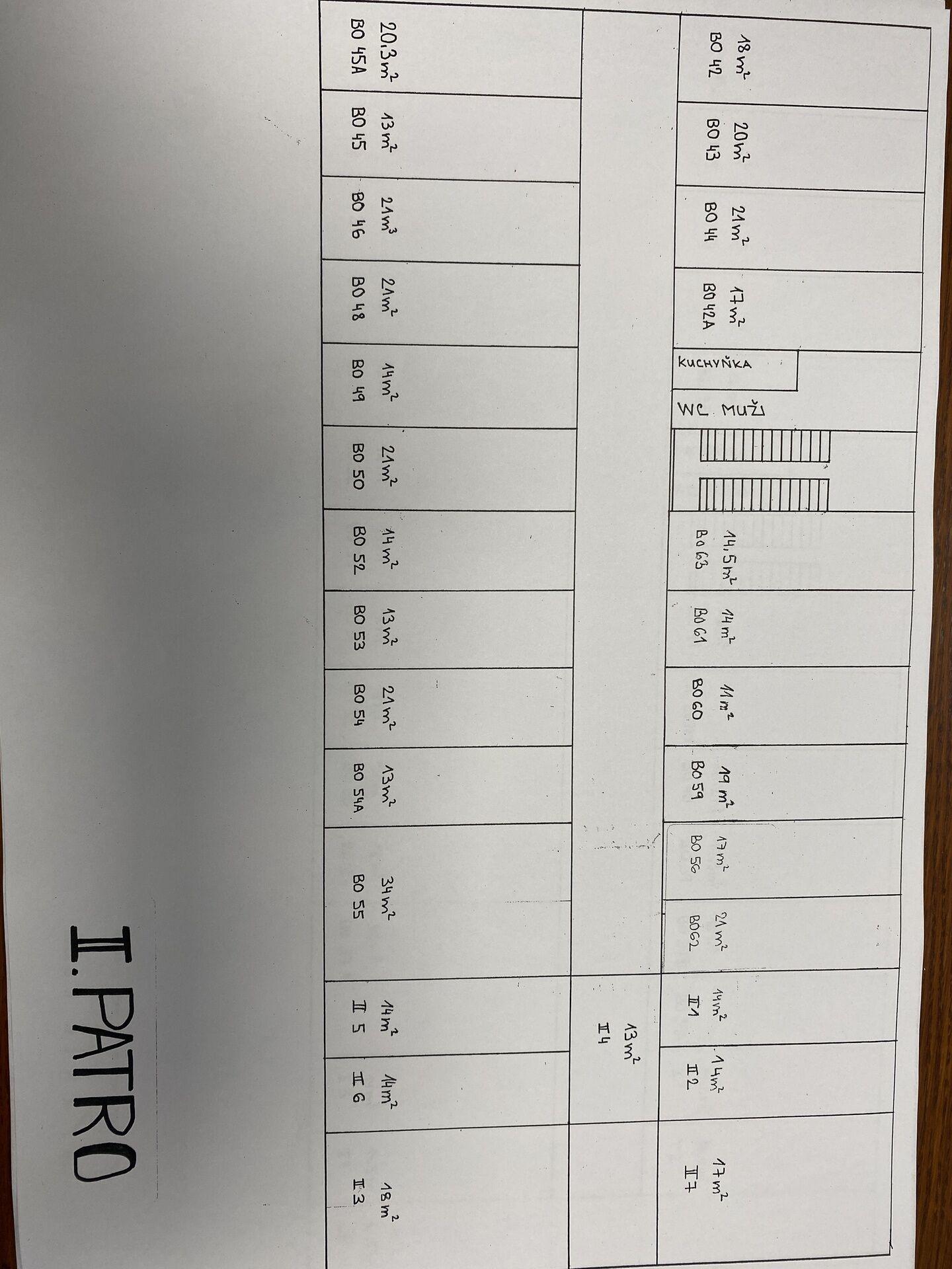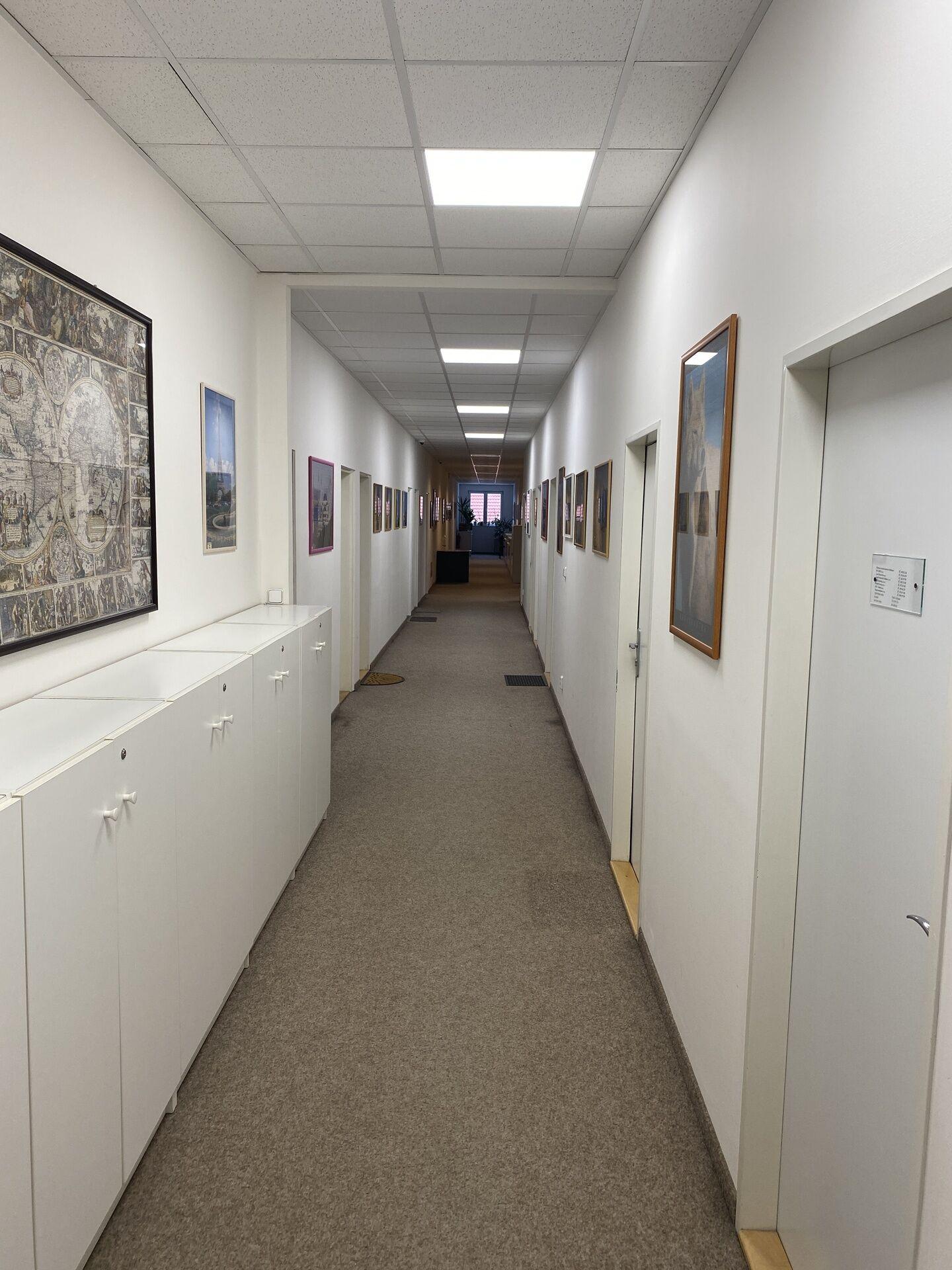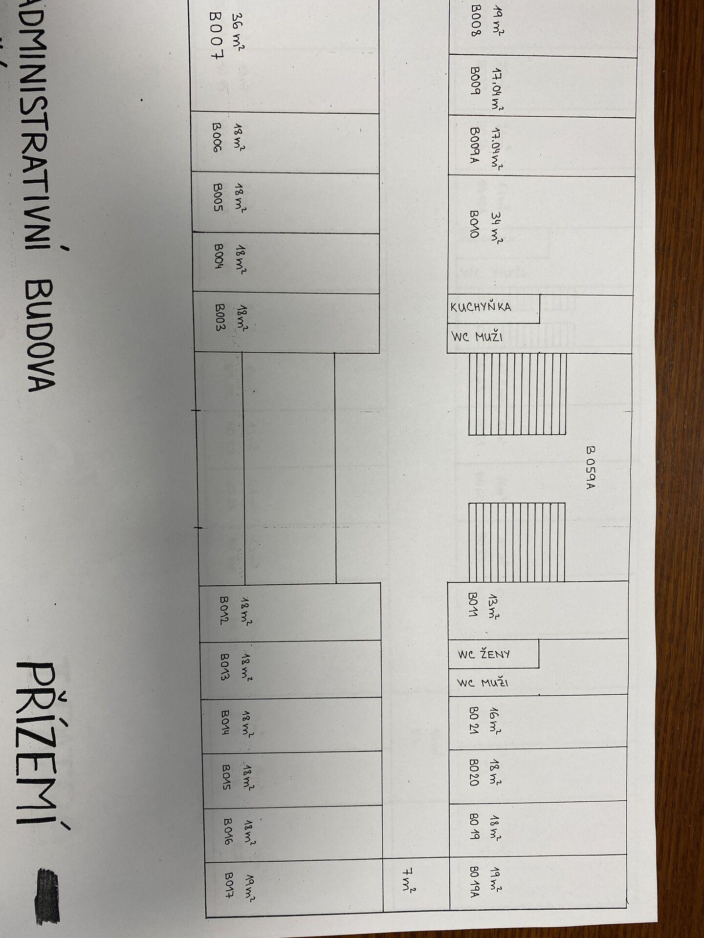 Přízemí - kancelář 17 m2 + 17 m2 + 18 m2 + 36 m2. Tyto kanceláře jsou v levé části přízemí objektu. Mají společnou chodbu, která je pod uzavřením.