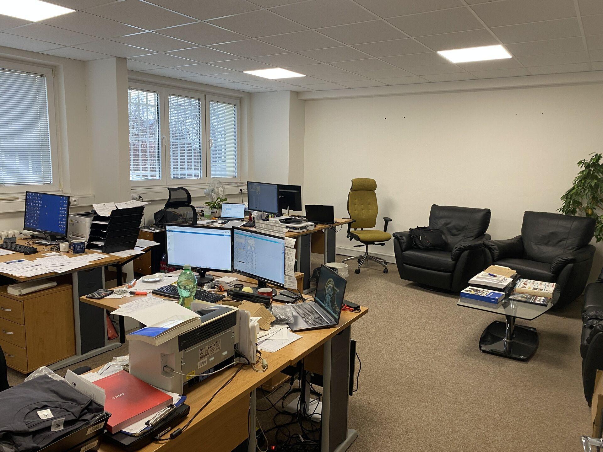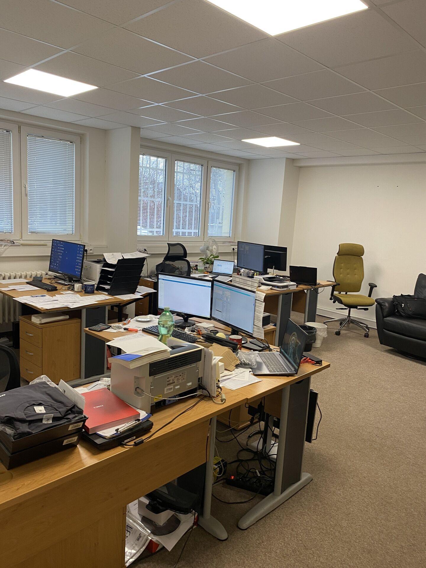 Mají též společnou kuchyňku a dámské i pánské WC. Možnost pronajmout i po jednotlivých kancelářích. Zařízené i nezařízené.